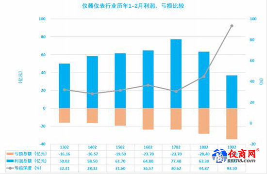 2.3儀器儀表行業(yè)歷年1-2月利潤、虧損比較