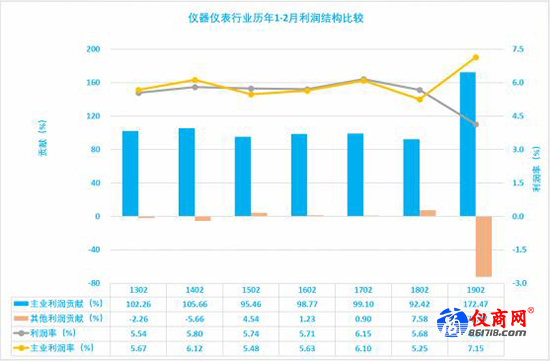 2.5儀器儀表行業(yè)歷年1-2月利潤結(jié)構(gòu)比較