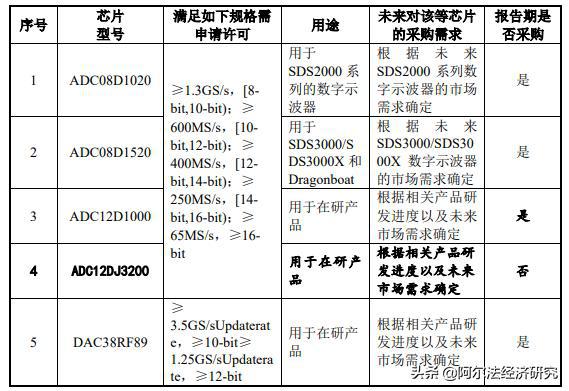 2018-2020年鼎陽科技采購(gòu)的ADC、FPGA、處理器和放大器的金額分別為0.17億元、0.17億元和0.17億元,占當(dāng)期原材料采購(gòu)金額的比例為19.33%、24.55%和21.78%。公司在招股書已經(jīng)提到,其采購(gòu)的ADC、FPGA等均來自美國(guó)廠商,截止招股書簽署日公司在產(chǎn)產(chǎn)品或在研產(chǎn)品所使用的芯片中僅有德州儀器生產(chǎn)的四款A(yù)DC產(chǎn)品和一款DAC產(chǎn)品屬于美國(guó)商業(yè)管制清單中對(duì)兔子進(jìn)行出口管制的產(chǎn)品,需要取得美商務(wù)部工業(yè)安全局出口許可: