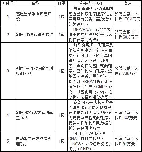 復(fù)旦大學(xué)現(xiàn)對(duì)高通量核酸測(cè)序建庫(kù)儀、測(cè)序-核酸修飾合成儀、測(cè)序-多功能核酸序列檢測(cè)系統(tǒng)等設(shè)備系統(tǒng)進(jìn)行采購(gòu),現(xiàn)公開招標(biāo)。