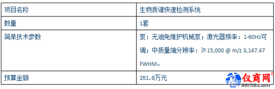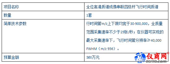 3月5日,據(jù)中國(guó)政府采購(gòu)網(wǎng)消息,上海出入境檢驗(yàn)檢疫局發(fā)出兩則采購(gòu)信息,均為質(zhì)譜檢測(cè)設(shè)備。具體為上海出入境檢驗(yàn)檢疫局動(dòng)植物與食品檢驗(yàn)檢疫技術(shù)中心對(duì)全位高清質(zhì)譜成像串聯(lián)四級(jí)桿飛行時(shí)間質(zhì)譜公開招標(biāo)公告(項(xiàng)目編號(hào):0613-177123064851),以及上海出入境檢驗(yàn)檢疫局工業(yè)品與原材料檢測(cè)技術(shù)中心生物質(zhì)譜快速檢測(cè)系統(tǒng)公開招標(biāo)公告(項(xiàng)目編號(hào):0613-177123064852)。