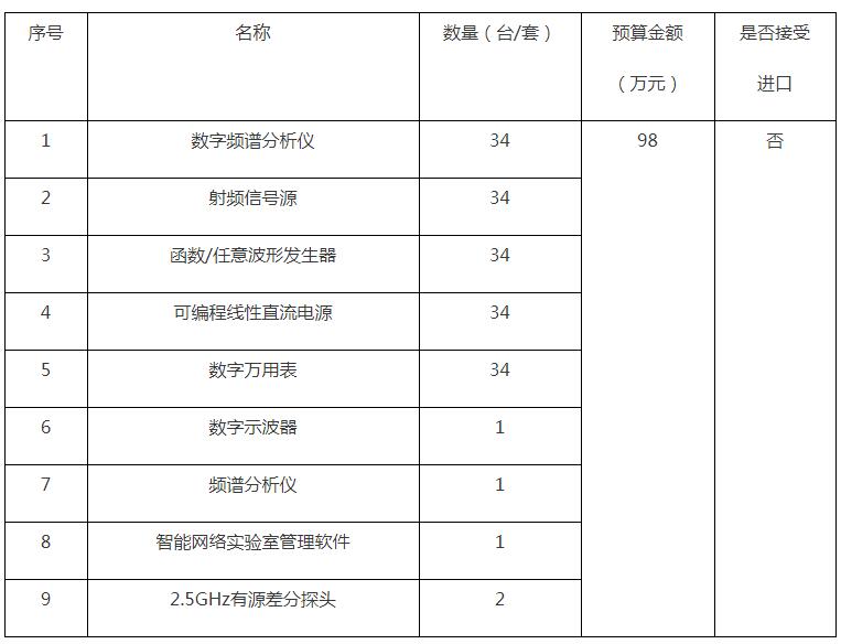 近日,中國(guó)政府采購(gòu)網(wǎng)發(fā)布《北京工業(yè)大學(xué)信息學(xué)部實(shí)驗(yàn)室采購(gòu)項(xiàng)目單一來源采購(gòu)公示》。公告內(nèi)容顯示,北京工業(yè)大學(xué)信息學(xué)部實(shí)驗(yàn)室采購(gòu)一批教學(xué)專用儀器儀表,包括數(shù)字頻譜分析儀、射頻信號(hào)源、函數(shù)/任意波形發(fā)生器、可編程線性直流電源、數(shù)字萬用表、數(shù)字示波器、頻譜分析儀、智能網(wǎng)絡(luò)實(shí)驗(yàn)室管理軟件、2.5GHz有源差分探頭,預(yù)算金額為98萬。