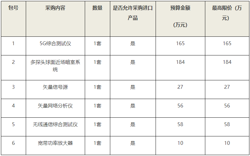 近日,中國政府采購網(wǎng)發(fā)布人工智能與數(shù)字經(jīng)濟(jì)廣東省實(shí)驗(yàn)室(廣州)采購一批通信測試儀器設(shè)備公告,采購預(yù)算金額為500萬元,采購儀器設(shè)備包括5G綜合測試儀、多探頭球面近場暗室系統(tǒng)、矢量信號源、矢量網(wǎng)絡(luò)分析儀、無線通信綜合測試儀、寬帶功率放大器。