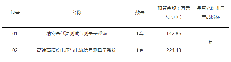 近日,中國政府采購網(wǎng)發(fā)布《清華大學錦屏大設施通用電子學測試平臺D部分采購項目公開招標公告》。公告內(nèi)容顯示,清華大學該采購項目擬采購1套精密高低溫測試與測量子系統(tǒng)和1套高速高精度電壓與電流信號測量子系統(tǒng),預算金額367.34萬元。其中,01包精密高低溫測試與測量子系統(tǒng)采購預算142.86萬元,02包高速高精度電壓與電流信號測量子系統(tǒng)采購預算224.48萬。
