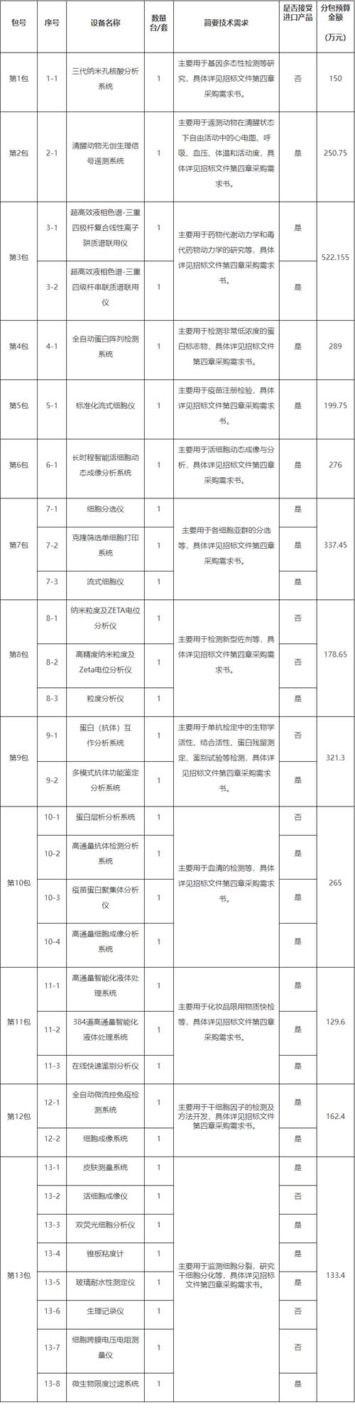 近日,中國食品藥品檢定研究院委托中化商務(wù)有限公司發(fā)布2023年度專項儀器設(shè)備購置項目第五批采購清單,計劃采購三代納米孔核酸分析系統(tǒng)、超高效液相色譜-三重四級桿串聯(lián)質(zhì)譜聯(lián)用儀等儀器設(shè)備,預算總計3215.455萬元。