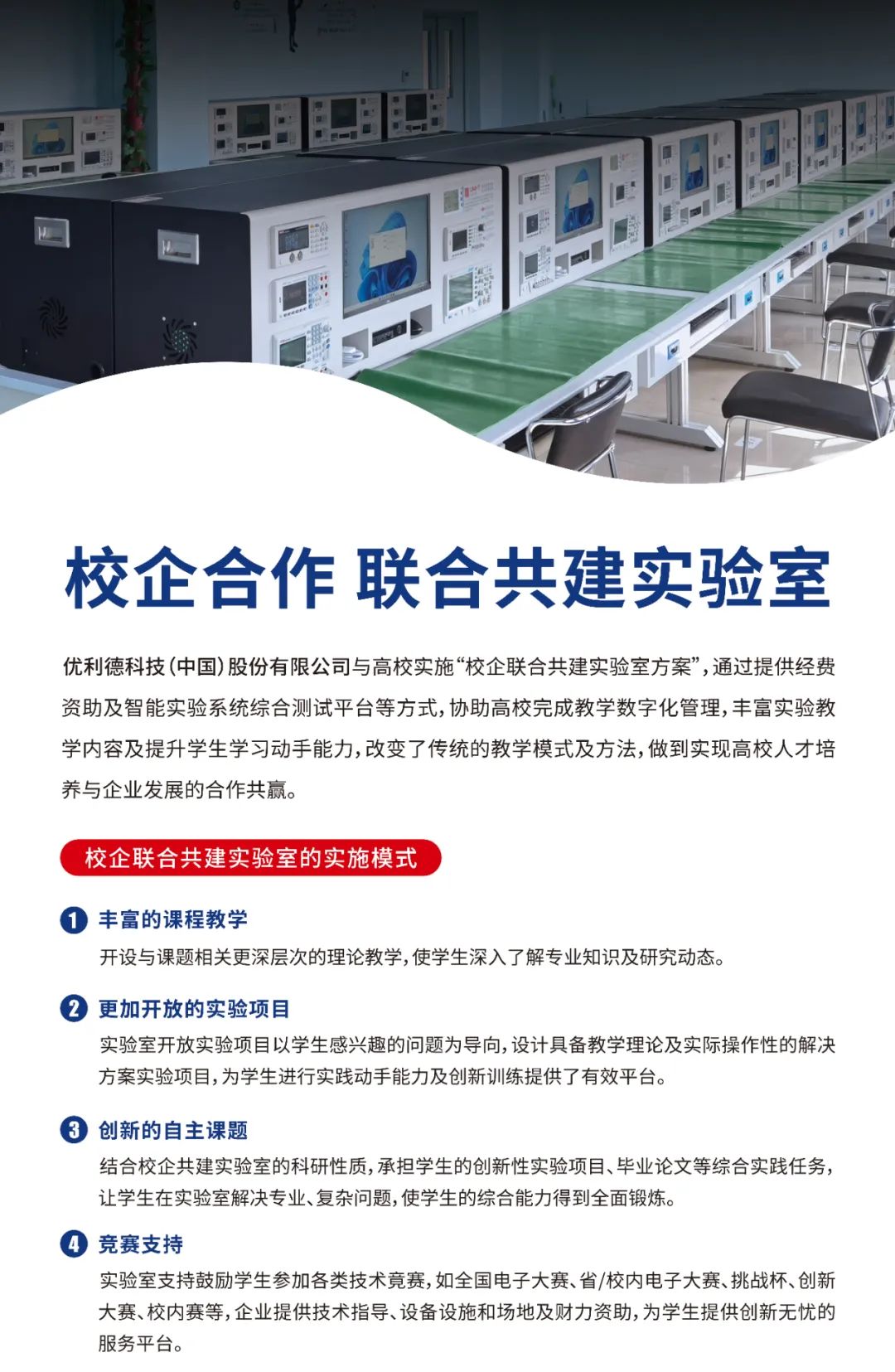 優(yōu)利德自2018年開始參與教育部主辦的“產(chǎn)學合作·協(xié)同育人”項目,在滿足高校對智能化設備的需求上不斷創(chuàng)新,將科技優(yōu)勢與產(chǎn)業(yè)優(yōu)勢相結(jié)合,為校企合作搭建橋梁。