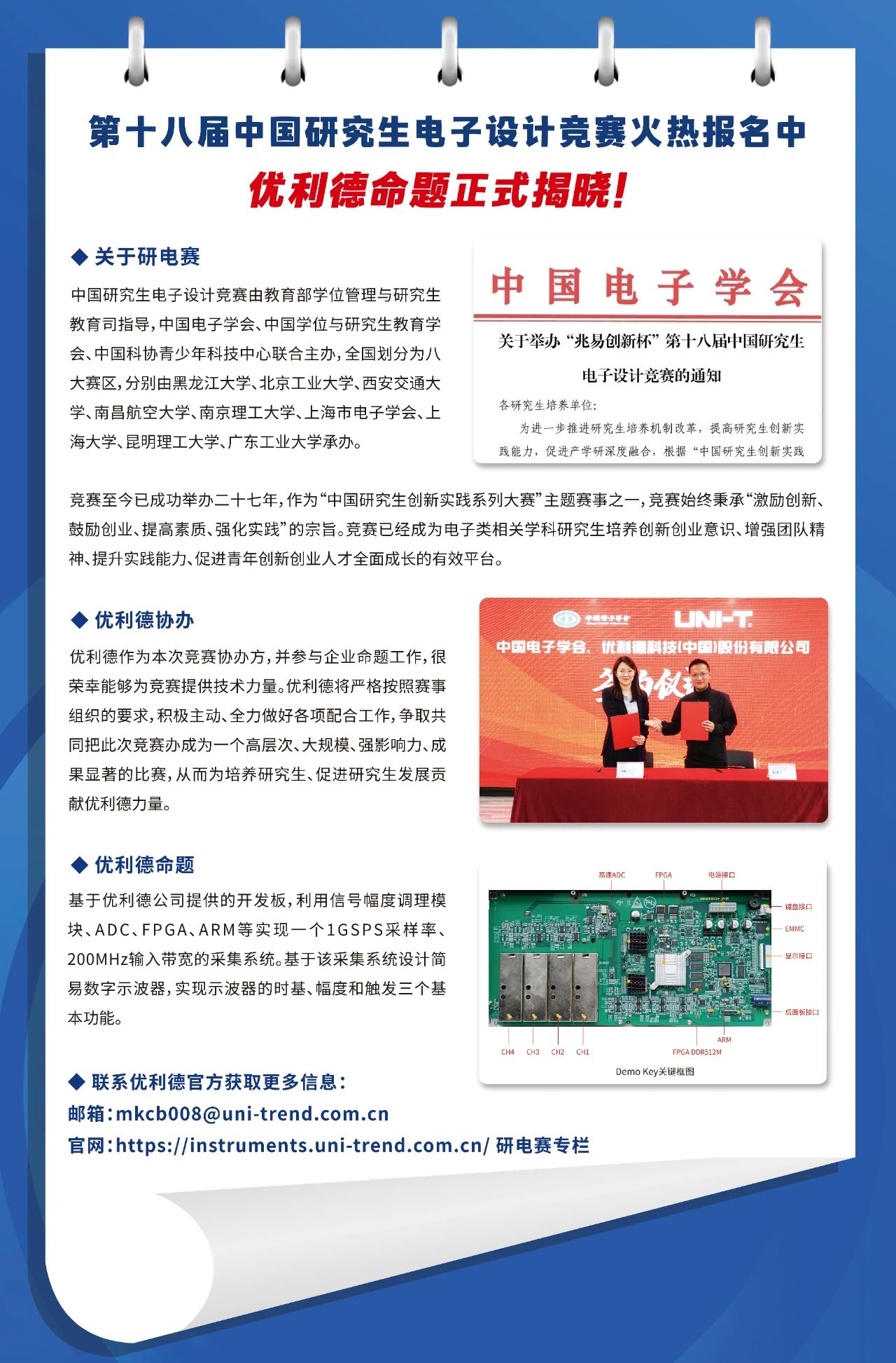 自2008年起,優(yōu)利德參與并協(xié)辦了 “全國大學生電子設計大賽”、“全國職業(yè)技能大賽”、各省級/區(qū)級“電子電工年會”、“物理年會”、“研究生電子設計競賽”等教育交流活動助力教育事業(yè)發(fā)展。