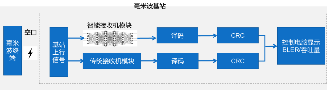 2023年是IMT-2030(6G)推進(jìn)組無線AI測試的開啟之年,今年的測試重點關(guān)注物理層技術(shù)方案的可性行和潛在應(yīng)用場景。中信科移動積極參與測試規(guī)范制定和測試驗證工作。在測試環(huán)境上,中信科移動使用公司現(xiàn)有產(chǎn)品來構(gòu)建無線AI技術(shù)驗證環(huán)境,在接收端使用智能接收機(jī)模塊來替代傳統(tǒng)檢測算法,并基于真實室內(nèi)空口環(huán)境進(jìn)行測試驗證,為了驗證無線AI智能接收機(jī)的檢測性能,團(tuán)隊還同時使用傳統(tǒng)接收機(jī)進(jìn)行測試,并將使用無線AI智能接收機(jī)的檢測結(jié)果與傳統(tǒng)接收機(jī)檢測結(jié)果進(jìn)行性能比對。