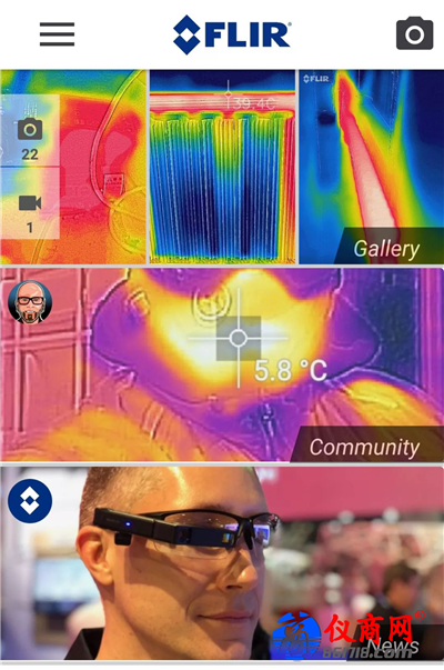 說(shuō)完安裝過(guò)程,接下來(lái)就該是軟件界面的操作介紹。進(jìn)入Flir One軟件界面,點(diǎn)擊右上角的拍攝圖標(biāo),便可以進(jìn)入紅外成像界面。