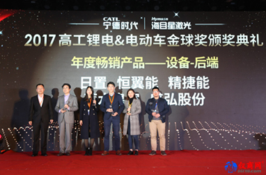 近日,2017高工鋰電&電動車金球獎頒獎典禮在東莞觀瀾湖酒店盛大舉行。現(xiàn)場來自材料、設備、電芯、BMS、PACK、電機電控、整車、運營租賃整個新能源汽車產(chǎn)業(yè)鏈超800位精英共同見證了本年度璀璨盛典。其中,在此次年度暢銷產(chǎn)品設備類評選,日置HIOKI榮獲了電池生產(chǎn)后端設備水晶球獎。