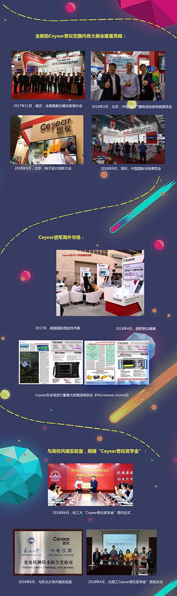 2018年9月18日,“Ceyear”“思儀”品牌發(fā)布一周年,一步步穩(wěn)健有力的腳步,匯聚成中電儀器全新的形象,創(chuàng)造了“思儀”豐富的寓意和成果。