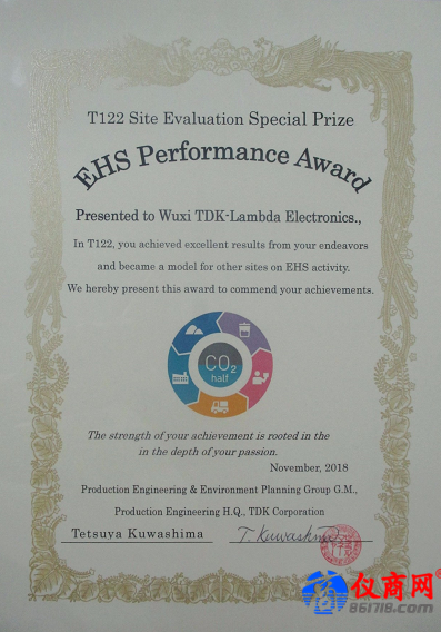 2018年11月1日,TDK(中國(guó))投資有限公司在廈門召開由中國(guó)地區(qū)所有TDK成員工廠參加的T123期安全環(huán)境年會(huì)。在會(huì)上各工廠分享了各自在安全環(huán)境方面的經(jīng)驗(yàn),同時(shí)對(duì)上一年度在安全環(huán)境方面作出突出貢獻(xiàn)的企業(yè)進(jìn)行表彰。通過(guò)對(duì)全球所有TDK工廠在T122期安全環(huán)境工作方面的業(yè)績(jī)?cè)u(píng)價(jià),共有7家工廠獲獎(jiǎng),中國(guó)區(qū)域有兩家,分別是臺(tái)灣TDK和無(wú)錫東電化蘭達(dá)電子有限公司。這也使無(wú)錫東電化蘭達(dá)電子有限公司成為本次評(píng)價(jià)中中國(guó)大陸唯一獲獎(jiǎng)的公司。