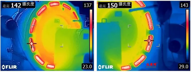 但是通過FLIR E6紅外熱像儀的檢測,可以直觀地看到電磁剎車溫度高達150度,若內(nèi)部線圈絕緣程度不夠,則很容易造成絕緣程度下降。