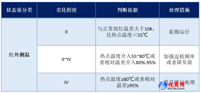 根據(jù)《DLT 393-2010 輸變電設(shè)備狀態(tài)檢修試驗(yàn)規(guī)程》我們把設(shè)備紅外測溫本體狀態(tài)量評(píng)價(jià)分為以下幾個(gè)等級(jí)(見表1),從小到大程度依次嚴(yán)重,需高度重視:
