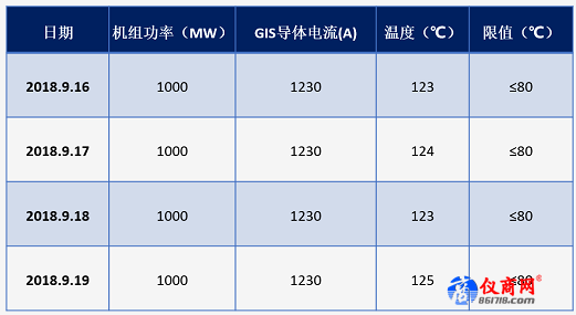 2018年9月16日,7號(hào)機(jī)組為1000MW滿功率運(yùn)行狀態(tài),主變高壓側(cè)電流為1200A,我們測量主變高壓側(cè)GIS(SF6全封閉組合電器)外殼波紋管溫度,發(fā)現(xiàn)支架處有123度的高溫(高于設(shè)備巡檢80度溫度限值要求見表2),在負(fù)荷,環(huán)境溫度和太陽輻照大致相同的情況下,我們用菲力爾熱成像測溫儀進(jìn)行持續(xù)一周觀察,溫度無明顯變化。緊急申請(qǐng)停運(yùn)后,檢查發(fā)現(xiàn)是由于GIS波紋管支架螺栓過熱燒灼導(dǎo)致的。這一缺陷嚴(yán)重時(shí),會(huì)造成GIS法蘭密封墊(最高耐受100度)受熱失效,從而導(dǎo)致GIS氣室漏氣,主變壓器出口還會(huì)出現(xiàn)短路,造成GIS、主變等設(shè)備嚴(yán)重?fù)p壞,如此一來,機(jī)組便會(huì)停機(jī),這樣一天造成的直接經(jīng)濟(jì)損失達(dá)1200萬。