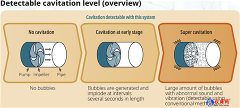 流體中的氣蝕會導(dǎo)致泵損壞。為了最大限度地減少這種損害,有必要在早期階段檢測氣蝕并采取如調(diào)整流量等措施。但氣蝕現(xiàn)象是在設(shè)備內(nèi)部發(fā)生的,不能目測檢查,也無法量化。氣蝕通常由現(xiàn)場人員檢測,他們依靠工作中獲得的經(jīng)驗和專業(yè)技術(shù)來檢測由過度氣蝕引起的振動和噪聲水平的變化。然而,即使是經(jīng)驗豐富的維護人員和專家也有可能會錯過一些早期跡象,在振動和噪聲不可避免地增加之前,這些問題可能無法被檢測到。