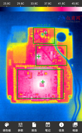 專業(yè)版Mx軟件提供豐富的溫度分析功能,除了拍攝紅外圖片和錄制紅外視頻,還可保存溫度數(shù)據(jù),記錄全相面每個(gè)像素點(diǎn)溫度,可使用離線軟件ThermoScope對(duì)拍攝物體進(jìn)行全面的數(shù)據(jù)分析和處理。