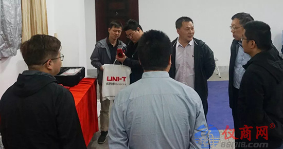 優(yōu)利德產(chǎn)品經(jīng)理金戰(zhàn)華和上海交通大學殳主任現(xiàn)場交流示波器