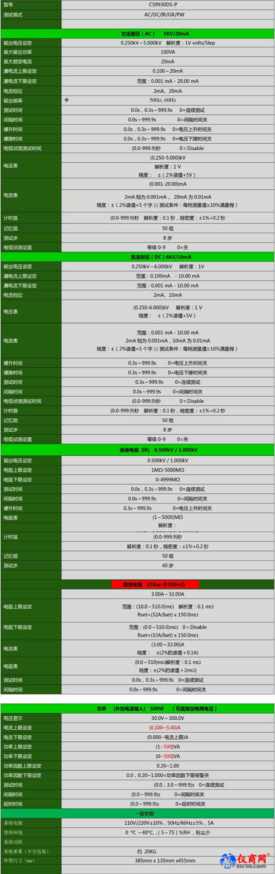 參數(shù)設(shè)置范圍大,符合世界各地及行業(yè)標(biāo)準(zhǔn);多功能組合測試一鍵完成,各步驟報(bào)警提示,大大提升測試效率“