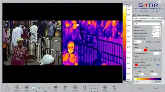 針對(duì)肺炎高溫發(fā)熱的癥狀,颯特紅外早在抗擊“非典”、埃博拉病毒做出了重大貢獻(xiàn)!國(guó)家質(zhì)檢總局也建議采用人體測(cè)溫熱像儀進(jìn)行疫情監(jiān)測(cè)。