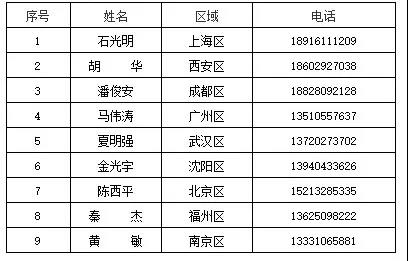 中國各區(qū)域經(jīng)理聯(lián)系方式如下: