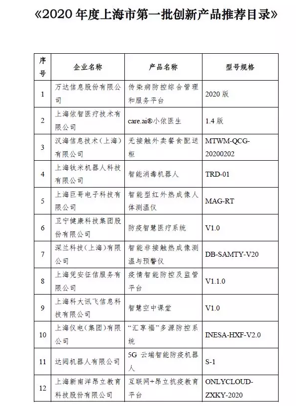 為貫徹落實(shí)習(xí)近平總書(shū)記關(guān)于應(yīng)對(duì)新型冠狀病毒感染的肺炎疫情的重要指示精神,根據(jù)《上海市經(jīng)濟(jì)信息化委關(guān)于開(kāi)展征集第一批防控新型冠狀病毒感染的肺炎疫情新技術(shù)、新產(chǎn)品、新應(yīng)用的通知》,上海市經(jīng)信委征集了一批對(duì)疫情防控具有明確效果的新產(chǎn)品,上海巨哥電子科技有限公司研發(fā)生產(chǎn)的人體測(cè)溫熱像儀成功入選《2020年上海市第一批創(chuàng)新產(chǎn)品推薦目錄》。【專題:紅外測(cè)溫儀,疫情帶火的2020首個(gè)爆款】