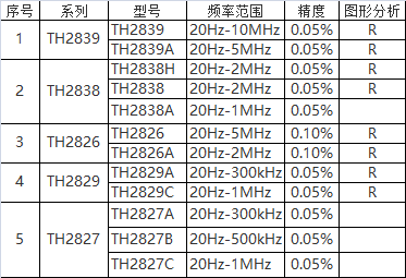 同惠電子共有4個系列8個型號具有圖形分析能力,但并不是必須有圖形分析能力的儀器才能進行頻率特性響應(yīng)分析,只要頻率可任意設(shè)置的LCR,都可以通過通訊接口結(jié)合上位機實現(xiàn)這個功能。因此,實際上現(xiàn)階段有五個系列,12個型號可以實現(xiàn)頻率響應(yīng)分析功能。