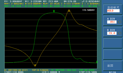 上述儀器的頻響分析測量功能適用于分析測量頻率在100kHz / 10MHz以內(nèi)的超聲器件的阻抗分析。如下圖: