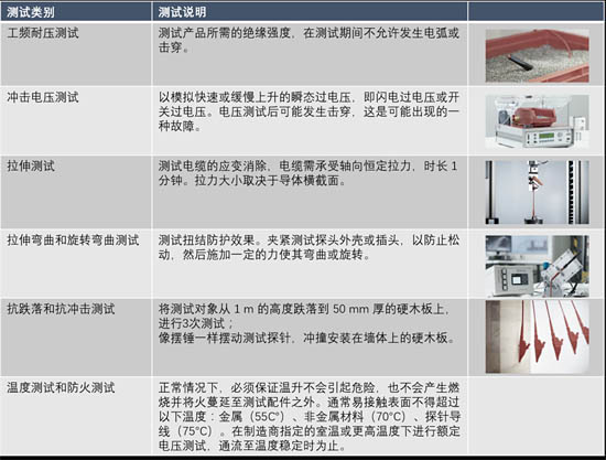 對于測試附件產(chǎn)品來說,必須依據(jù)IEC 61010-031執(zhí)行的產(chǎn)品測試有工頻耐電壓測試、沖擊電壓測試、拉伸測試、拉伸彎曲和旋轉(zhuǎn)彎曲測試、抗跌落和抗沖擊測試、溫度和防火測試等。