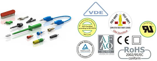 史陶比爾產(chǎn)品設(shè)計嚴格遵守國際標準,采用久經(jīng)考驗的MULTILAM技術(shù),具有優(yōu)良的電氣和機械性能。測試附件帶有觸摸保護(IP2X)且提供基礎(chǔ)絕緣、雙重或加強絕緣,最大程度地保障操作安全。生命周期長,插拔次數(shù)超過5000次,可長期穩(wěn)定地工作。產(chǎn)品上標識CAT等級和額定電流與電壓,方便操作人員選擇測試附件。