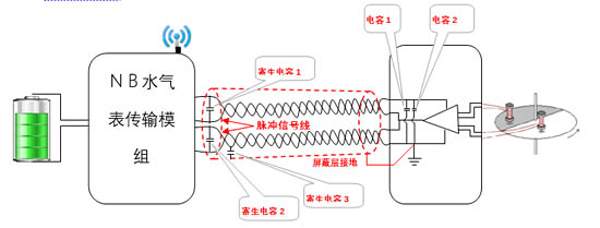 傳統(tǒng)解決方案是減小無磁計(jì)量傳感器脈沖線的輸出阻抗, 采用更低的系統(tǒng)工作電壓和盡量短的脈沖傳輸線的辦法, 來減小信號線接收NB射頻信號的目的,從而達(dá)到降低無磁計(jì)量傳感器被無線射頻信號干擾的概率。這樣做一方面降低了電源使用效率帶來了系統(tǒng)功耗的上升, 從而降低了無線智能表的電池使用壽命,帶來整表成本的增加。另一方面只能從一定程度上降低無磁計(jì)量傳感器接收干擾信號的強(qiáng)度,并不能完全解決無磁計(jì)量傳感器被干擾的問題。