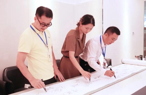 華盛昌領(lǐng)導(dǎo)及員工代表在長(zhǎng)卷簽名合影