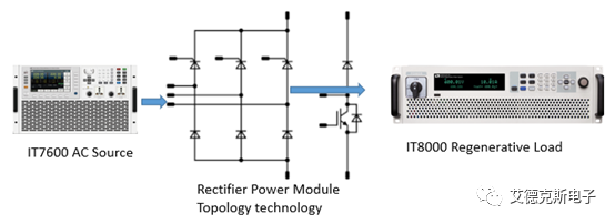 2、以整流功率模塊(Rectifier)為例,其作用是將三相交流電整流為直流輸出,測試中可以使用IT7600交流源和IT8000回饋式直流電子負載。