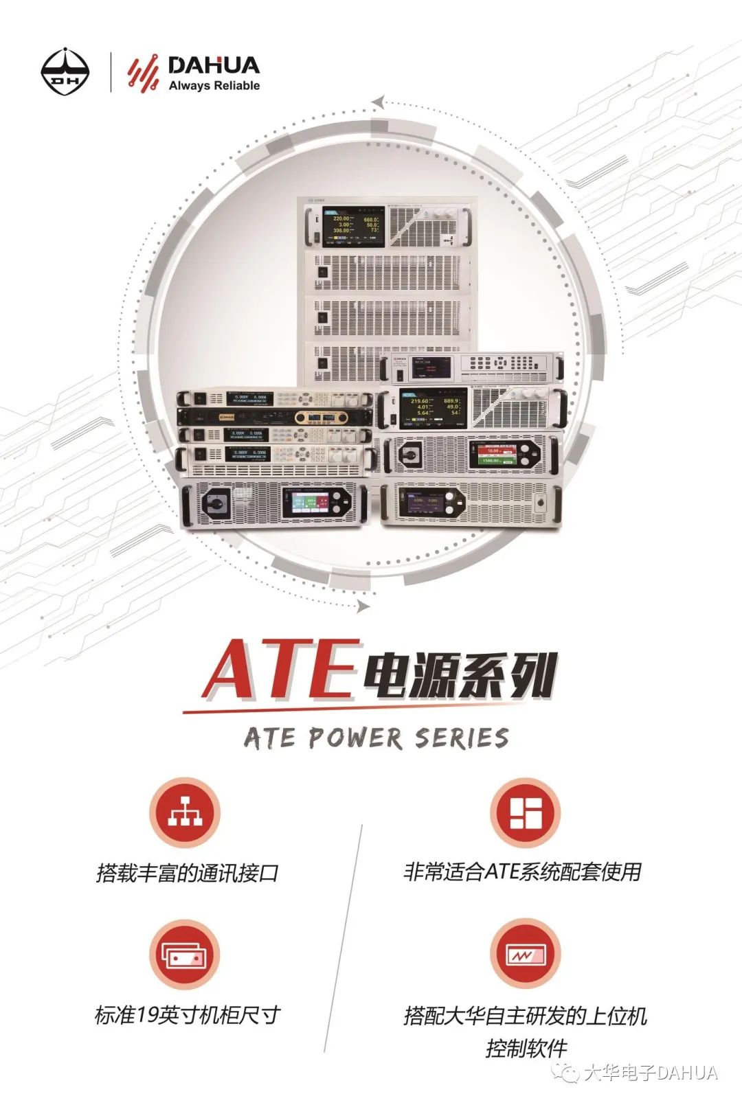 大華電子立足電源相關(guān)應(yīng)用,把握核心技術(shù),旨在打造國產(chǎn)化高端測試儀器品牌。在接下來的日子,大華電子會(huì)繼續(xù)齊心協(xié)力,以單體精品儀器為基礎(chǔ),做行業(yè)解決方案領(lǐng)先的本土供應(yīng)商,始終堅(jiān)持著不斷的探索創(chuàng)新,為國防建設(shè)乃至整個(gè)民族做點(diǎn)事兒。