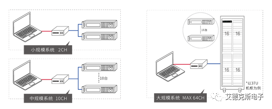 IT-M系列具備靈活的多通道的設(shè)計架構(gòu),可將同系列多臺產(chǎn)品組成多通道源載系統(tǒng), 1個37U機(jī)柜內(nèi)就可配置64通道,最多可達(dá)258通道。工程師可以透過并聯(lián)功能測試多種不同功率的待測物,讓使用更為彈性,設(shè)備的使用率也大幅提高。此功能廣泛的應(yīng)用于產(chǎn)線生產(chǎn)測試、多路老化系統(tǒng)、集成電路測試等測試領(lǐng)域。
