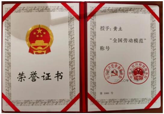 ▲黃立榮獲“全國(guó)勞動(dòng)模范”榮譽(yù)稱號(hào)