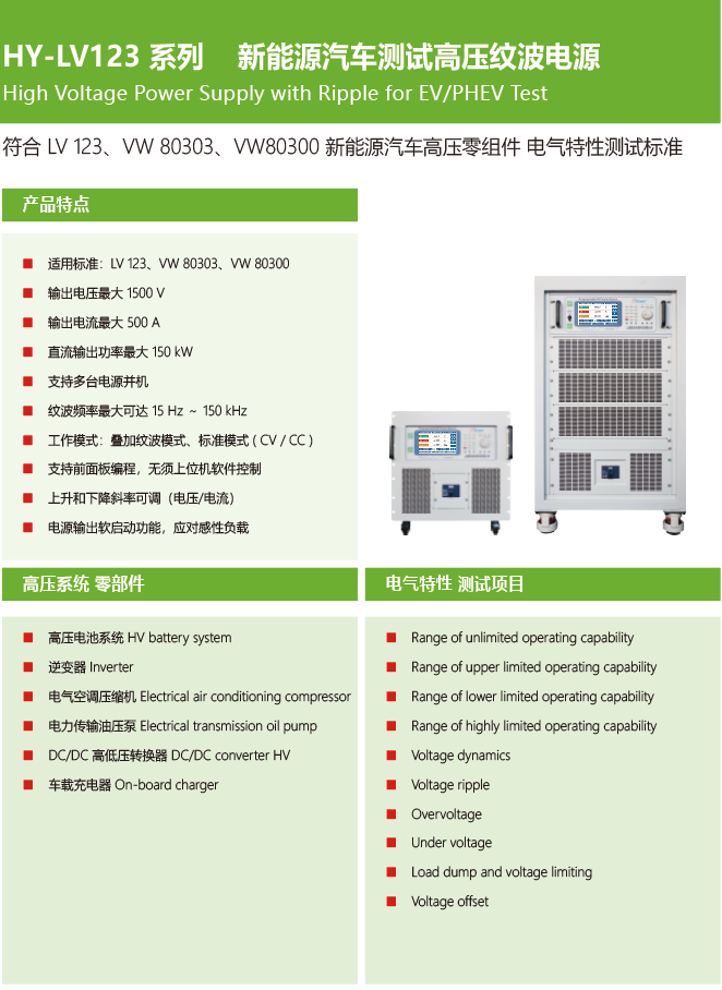 不僅如此,航裕HY-BP系列雙極性汽車電子測試高速電源,適用標準:ISO 16750-2、ISO 7637-2要求的電源電壓變動測試(脈沖2b、脈沖4等)、GB28046.2,可滿足各汽車制造商相關(guān)標準:LV 124、LV148、SMTC3 800 001、VW 80000、GS 95024-2,及其越趨復(fù)雜的波形變動測試之高速響應(yīng)速度要求。