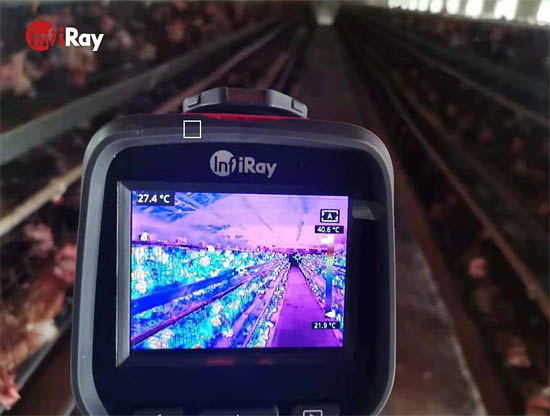 環(huán)境溫度,對雞的生長影響極大。一般雞舍面積較大且分多層,難以控制整體溫度一致,分區(qū)域檢測有一定不準(zhǔn)確性。紅外熱像儀能夠檢測到視野中每個點的溫度數(shù)值,非常適合進行雞舍溫度分布監(jiān)控。