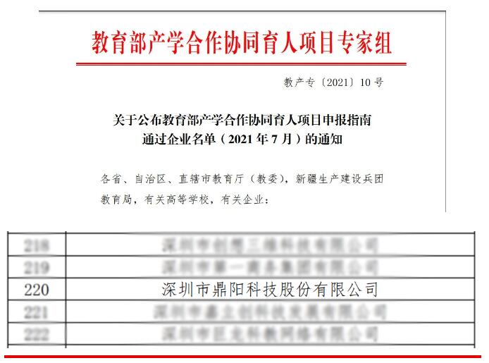 2021年8月6日,教育部產(chǎn)學(xué)合作協(xié)同育人項(xiàng)目專家組發(fā)布《教育部產(chǎn)學(xué)合作協(xié)同育人項(xiàng)目申報(bào)指南通過企業(yè)名單(2021年7月)的通知》,鼎陽科技申報(bào)的2項(xiàng)新工科建設(shè)項(xiàng)目,23項(xiàng)師資培訓(xùn)項(xiàng)目,25項(xiàng)實(shí)踐條件建設(shè)和實(shí)踐基地建設(shè)項(xiàng)目,共計(jì)50個(gè)項(xiàng)目經(jīng)教育部產(chǎn)學(xué)合作協(xié)同育人項(xiàng)目專家組審議全部通過。