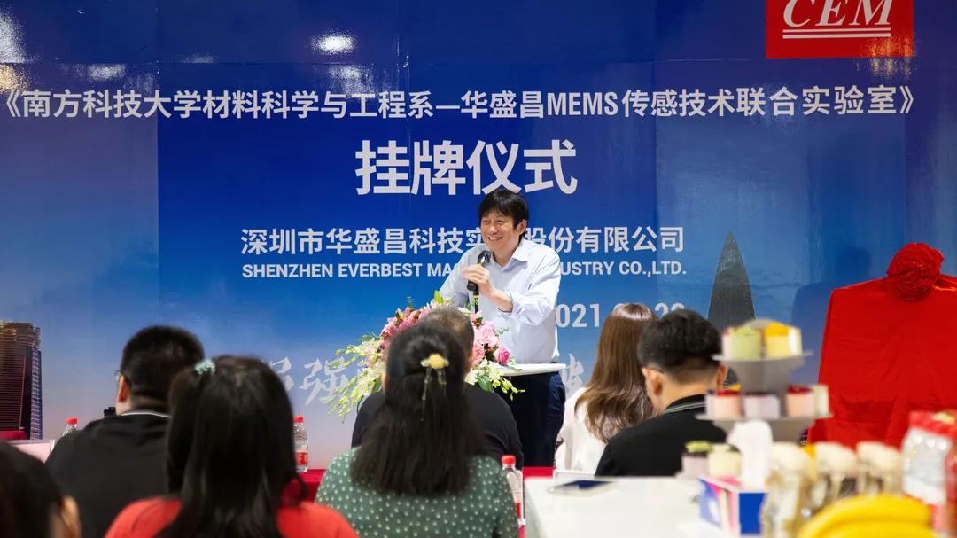 9月22日下午,由CEM華盛昌組織舉辦的“南方科技大學(xué)材料科學(xué)與工程系-華盛昌MEMS傳感技術(shù)聯(lián)合實(shí)驗(yàn)室”揭幕式在華盛昌總部正式拉開帷幕。南科大材料科學(xué)與工程系教授、南科大實(shí)驗(yàn)室與設(shè)備部部長程鑫先生一行與CEM華盛昌創(chuàng)始人、公司董事長袁劍敏先生及高層領(lǐng)導(dǎo)共同出席了此次揭幕式。