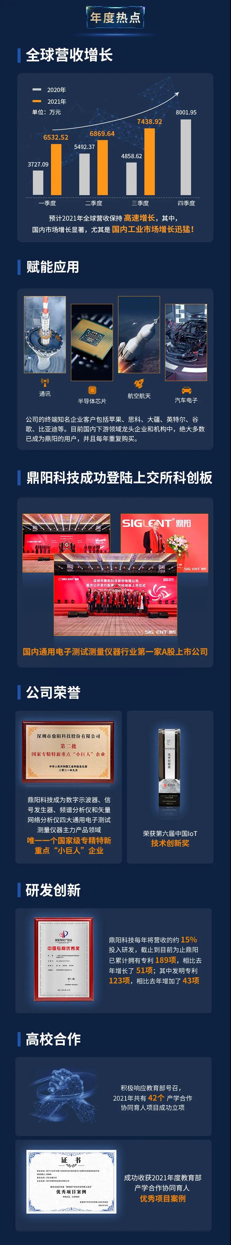 在《眾智聚鼎,壯志驕陽(yáng) | 鼎陽(yáng)科技2021專屬年度報(bào)告》中,鼎陽(yáng)科技表示,預(yù)計(jì)2021年全球營(yíng)收保持高速增長(zhǎng),其中,國(guó)內(nèi)市場(chǎng)增長(zhǎng)顯著,尤其是國(guó)內(nèi)工業(yè)市場(chǎng)增長(zhǎng)迅猛!此外,鼎陽(yáng)科技的終端知名企業(yè)客戶包括蘋果、思科、大疆、英特爾、谷歌、比亞迪等。目前國(guó)內(nèi)下游領(lǐng)域龍頭企業(yè)和機(jī)構(gòu)中。絕大多數(shù)已成為鼎陽(yáng)的用戶,并且每年重復(fù)購(gòu)買。