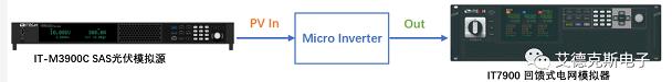 針對這款微型逆變器搭建一個實測環(huán)境,前端用我司IT-M3904C-80-80光伏模擬源作為微型逆變器的PV輸入,后端IT7905-350-30U電網(wǎng)模擬器用于模擬真實的模擬電網(wǎng)進行拉載,孤島保護等方面的測試。