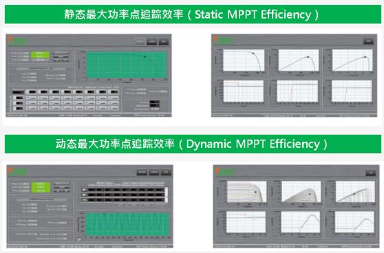 根據(jù)光伏逆變器規(guī)格設(shè)定開路電壓(Voc)/短路電流(Isc)/最大功率點(diǎn)的電壓(Vmpp)和電流(Impp),系統(tǒng)將自動(dòng)建立能模擬太陽能面板在一般日照度下的I-V曲線。透過系統(tǒng)內(nèi)部DSP晶片運(yùn)算即可演算出P-V及I-V曲線,輸出中具備動(dòng)態(tài)日照可調(diào)功能。