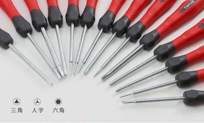 拓利亞精密螺絲批采用鉻釩鋼鍛造,堅(jiān)韌耐用,獨(dú)特工藝加硬處理能保證螺絲批足夠的扭力和長使用壽命,批頭高精密咬合度,契合度高,有效避免螺絲滑牙保護(hù)設(shè)備。此款螺絲批有六角、三角以及人字形的不同尺寸批頭,貼合市場主流電子產(chǎn)品拆裝標(biāo)準(zhǔn),滿足大多數(shù)精密維修所需。