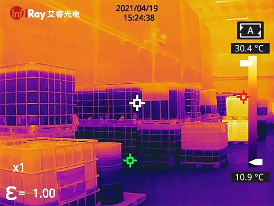 現(xiàn)場安裝紅外熱成像儀,對電解液存儲間進(jìn)行24h實(shí)時監(jiān)控;一旦出現(xiàn)具備溫度異常,發(fā)送報警信號給監(jiān)控室,第一時間排除隱患。