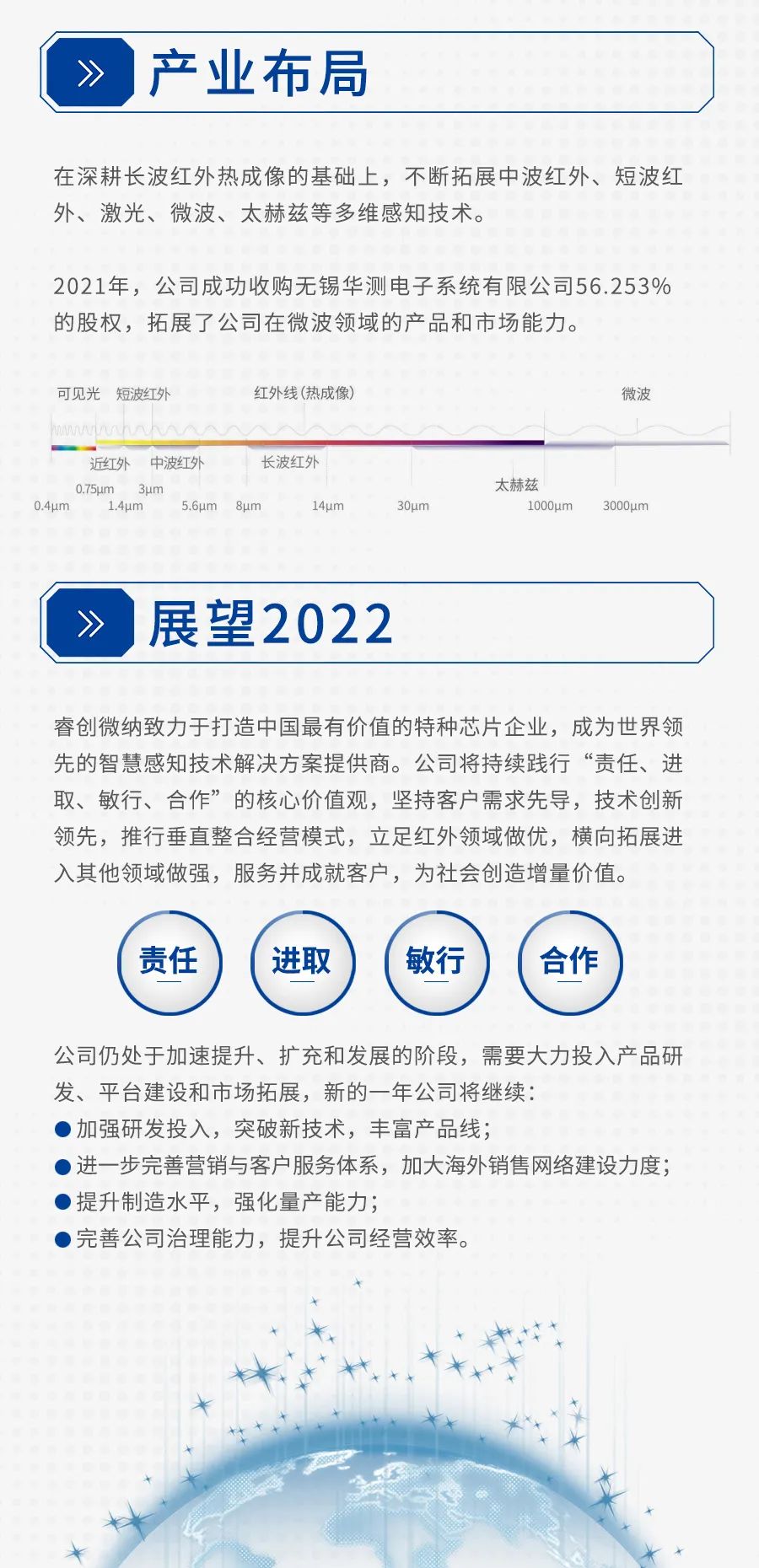 睿創(chuàng)微納致力于打造中國(guó)最有價(jià)值的特種芯片企業(yè),成為世界領(lǐng)先的智慧感知技術(shù)解決方案提供商。睿創(chuàng)微納將承載“以技術(shù)進(jìn)步為客戶創(chuàng)造價(jià)值,讓人們從更多維度發(fā)現(xiàn)世界之美”的使命,在持續(xù)拓展人類感知能力的征途上留下自己的腳印。
