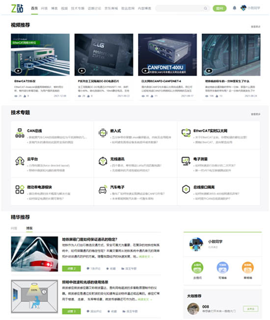 無論你是技術(shù)開發(fā)工程師,還是渴望與同行交流的電子興趣愛好者,想必都期盼集自由、智能、資源和內(nèi)容于一身的開放式知識交流互動平臺。當你打開Z站https://developer.zlg.cn 時,簡潔、易交互的設(shè)計界面會令你耳目一新,激發(fā)你一探究竟的興趣。