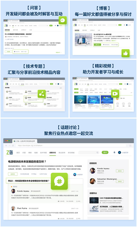 接下來, Z站在致遠電子團隊的運作下,還會繼續(xù)推進二期版本的開發(fā)。圍繞如今互聯(lián)網(wǎng)直播、小視頻等傳播潮流,進而規(guī)劃直播、線上培訓、自主商城等更多社區(qū)服務(wù)功能,為廣大技術(shù)開發(fā)工程師群體提供越來越豐富的社區(qū)體驗,敬請期待。