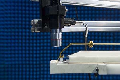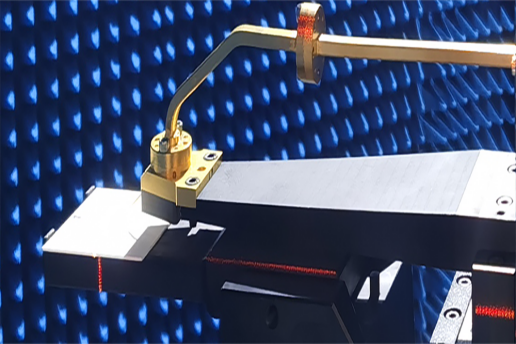 3.基于低散射結(jié)構(gòu)的減振平臺設(shè)計;減振平臺中載片臺用于承載片上天線,采用低損耗、低介電的材料制作,減小電磁反射對測試精度的影響。由于探針是易耗品,比較脆,為了防止機(jī)械裝置運動帶來的震動對探針造成損害,減振平臺采用主動式減振基座進(jìn)行了減振處理,如圖7、圖8所示。