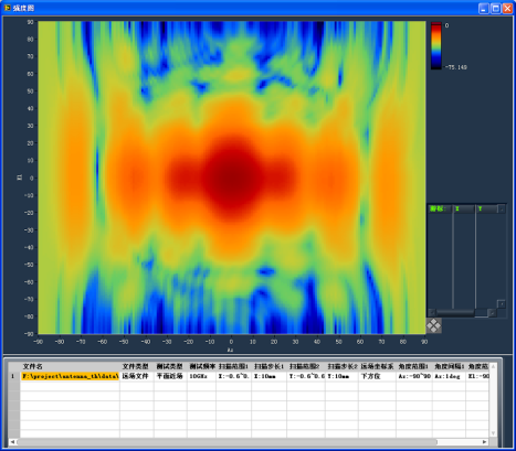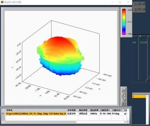 2.基于自動避障的三維測試技術(shù);由于暗箱空間有限,為了保障饋電平臺安全,片上天線測試系統(tǒng)具有自動避障技術(shù),能夠自動完成片上天線的近場或遠(yuǎn)場測試,測試結(jié)果如圖5、圖6所示。